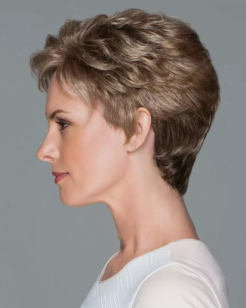 A Hand-Tied top for light, cool comfort and a sheer scalloped hairline for off the face styling enhance this classic cut of softly waved layers that beautifully blend to a neck-hugging, tapered nape.