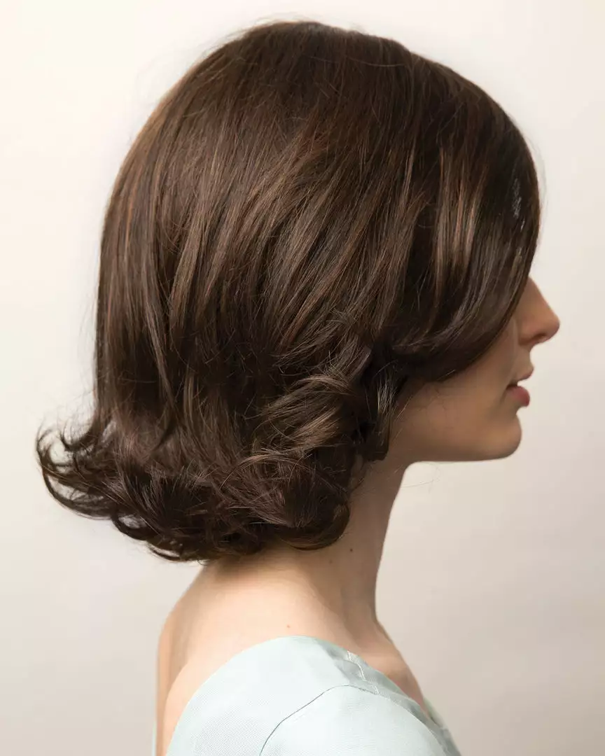 Shoulder length bob with romantic, wavy and softly layered fringe.