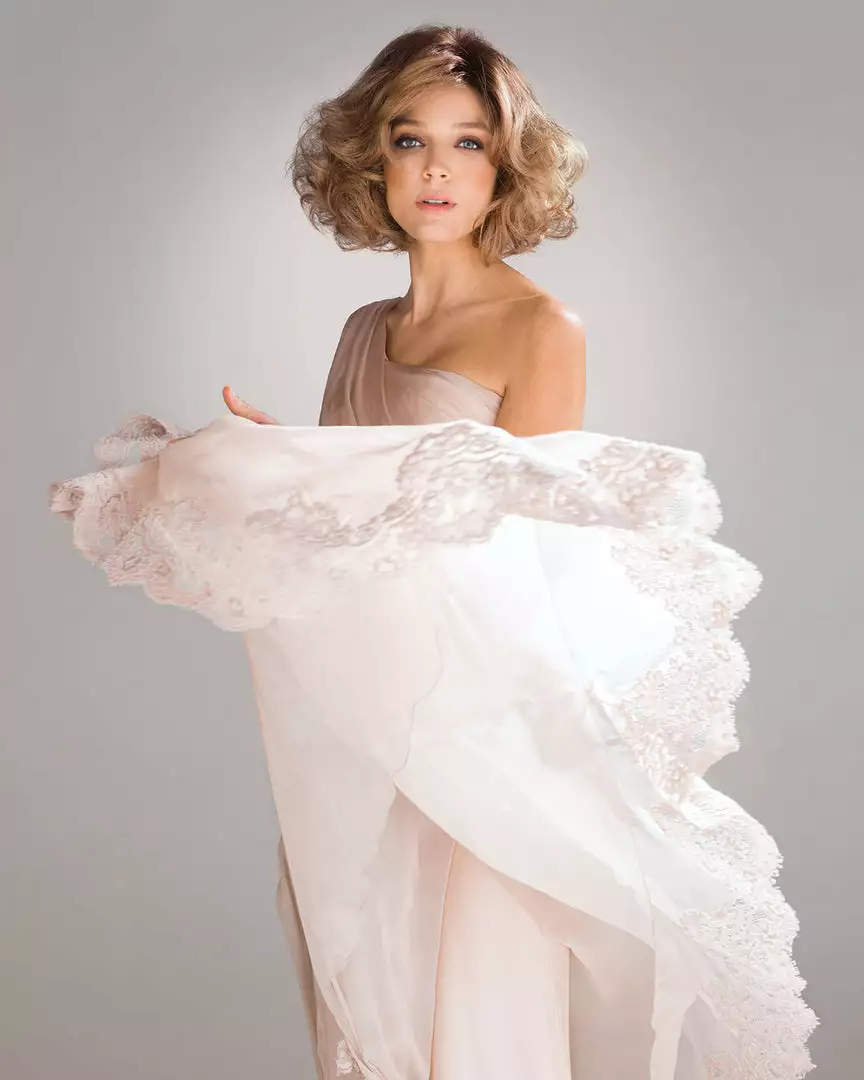 Shaggy bob with loose, romantic curls and softly layered fringe.