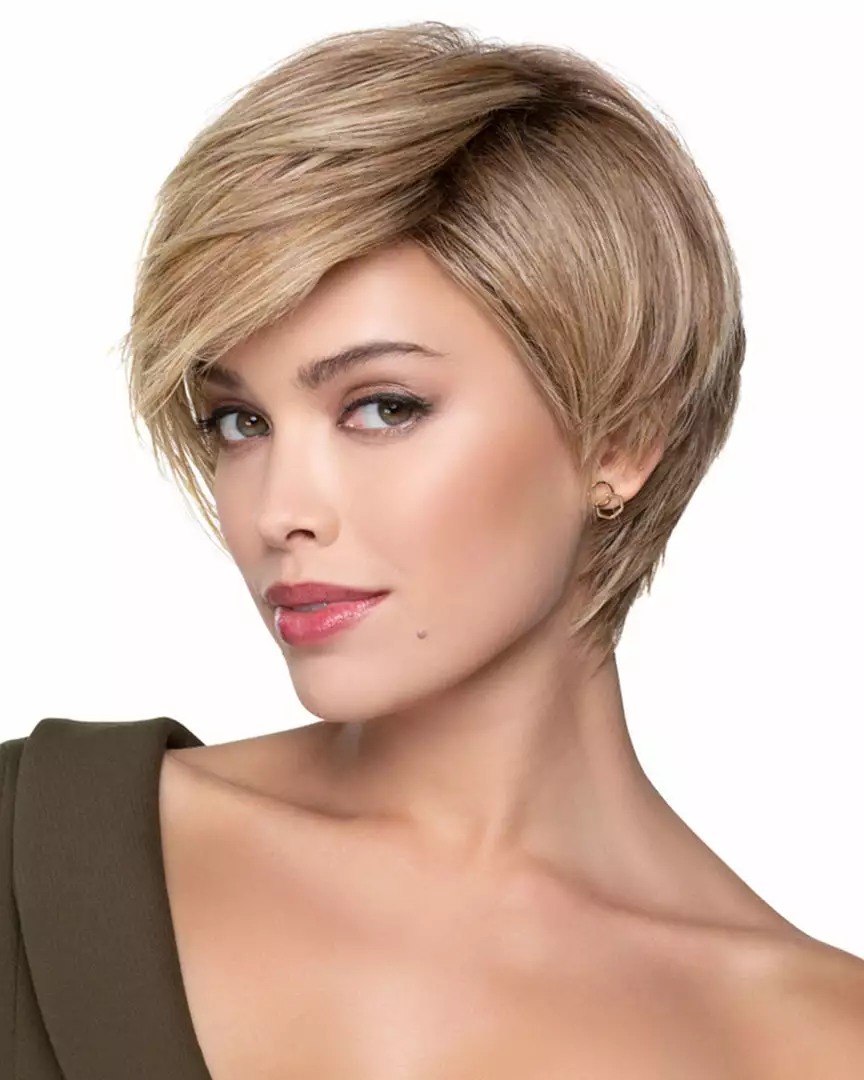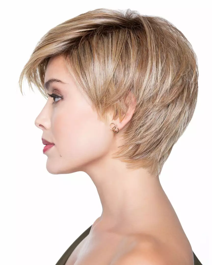 ???A short side swept pixie with feathered texture wispy hair that frames the face or brushes back behind the ears, soft sweeping volume across the crown