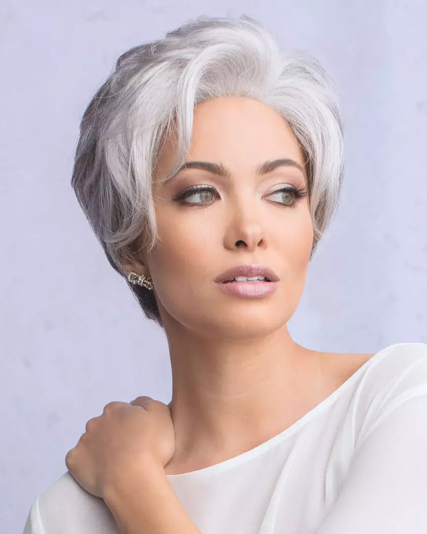 Bethany from our Alexander Couture Collection is a short-length synthetic wig. This straight ready-to-wear wig is a voluminous brushed-up pixie with a blowout texture. This style will give you a sleek and classy look. This trendy wig has a new lace front. Bethany cap construction has adjustable tabs in the back nape area to allow a more comfortable fit. The result is a comfortable fit with a natural look that is both fashionable and easy to wear.