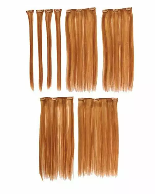 This 12″ eight-piece clip in human hair extensions kit adds natural-looking length, volume and color to hair in minutes. Heat style to create your perfect look.