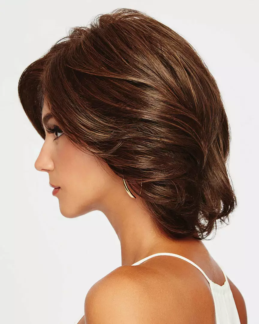 Including dramatic side swept bangs and long, subtle layering throughout, this stunning mid-length cut combines the natural locking hairline of a Sheer Indulgence lace front, monofilament part for off-the -face styling and parting flexibility, with the added styling versatility of our heat friendly Tru2Life synthetic hair.