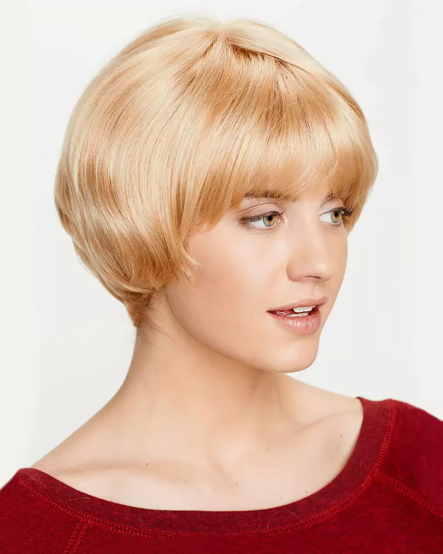 Elgin is a gorgeous mushroom bob with a shaggy nape and mono cap construction. Offering unparalleled styling versatility and effortless look. Combined realism of a natural looking scalp and hair growth allow the greatest confidence in wear. A perfectly flattering face framing style with a lightweight design of open wefts along the inside of cap at the sides and nape.