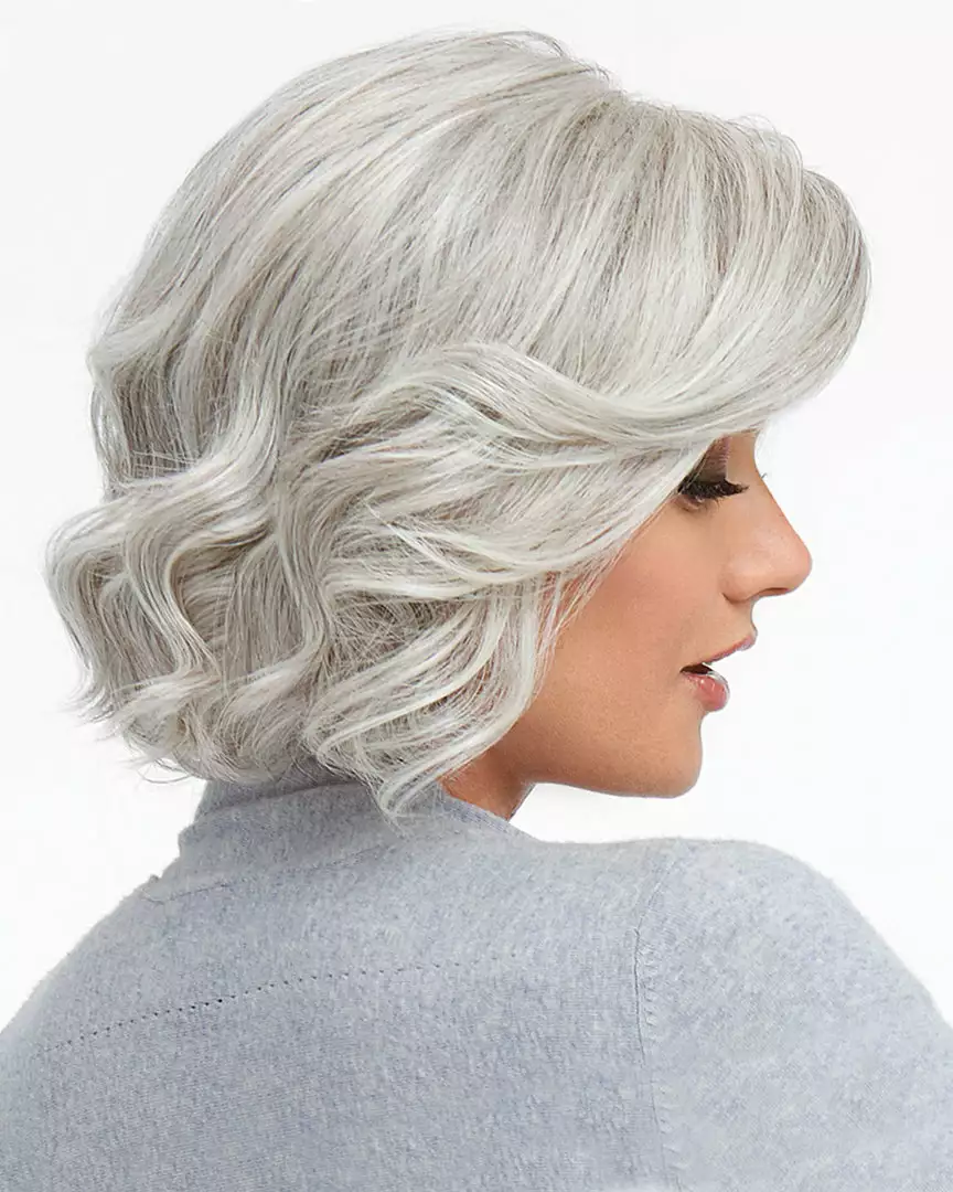 A chopped bob that’s loaded with wave and movement, this flattering style includes an eyelash bang and curled back waves for a thoroughly modern vibe. Slightly tapered ends and natural volume bring this classic silhouette up to date.