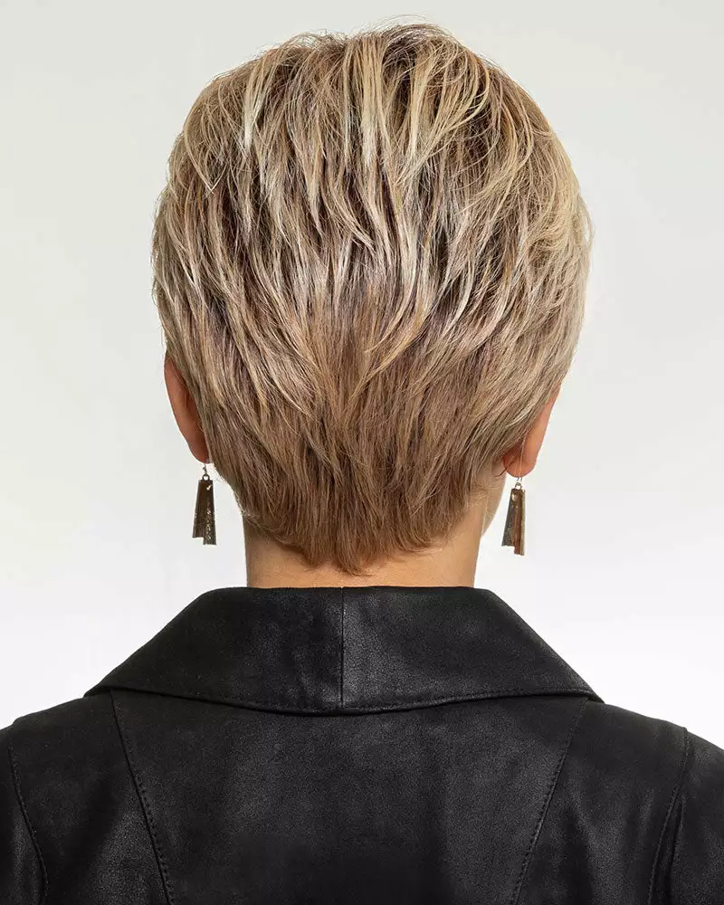 This short, layered pixie has a light, wispy texture that allows for multiple styling options from soft and subtle to spikey and piecey. The razor-cut sides and tapered neck make this a cool and easy choice. Curl or flat iron the heat-friendly Tru2Life fiber to achieve your desired look.