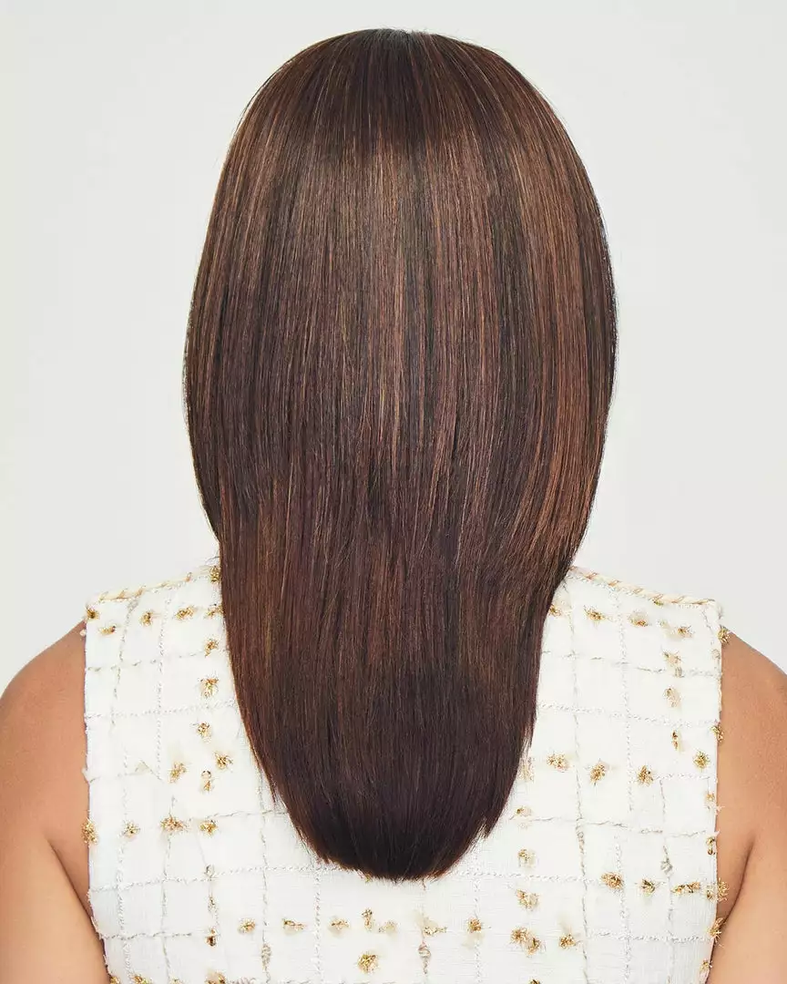 The pear-shaped base of this elegant topper lets you position the smaller or wider end as needed to appropriately conceal the area of hair loss. An extended monofilament border lies flush to the head with no telltale edge. Our favorite feature? The soft, silky smooth extra layer protects and comforts a sensitive scalp. Choose the 10″ option to blend with chin to shoulder-length hair.