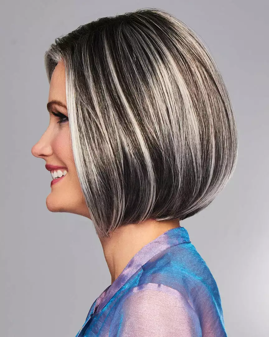 With a hand-knotted monofilament part for varied parting options and a sheer lace front for a life-like, off-the-face styling, this precision crafted below-the-chin page includes sides that gently graduate up to a collar length nape.
