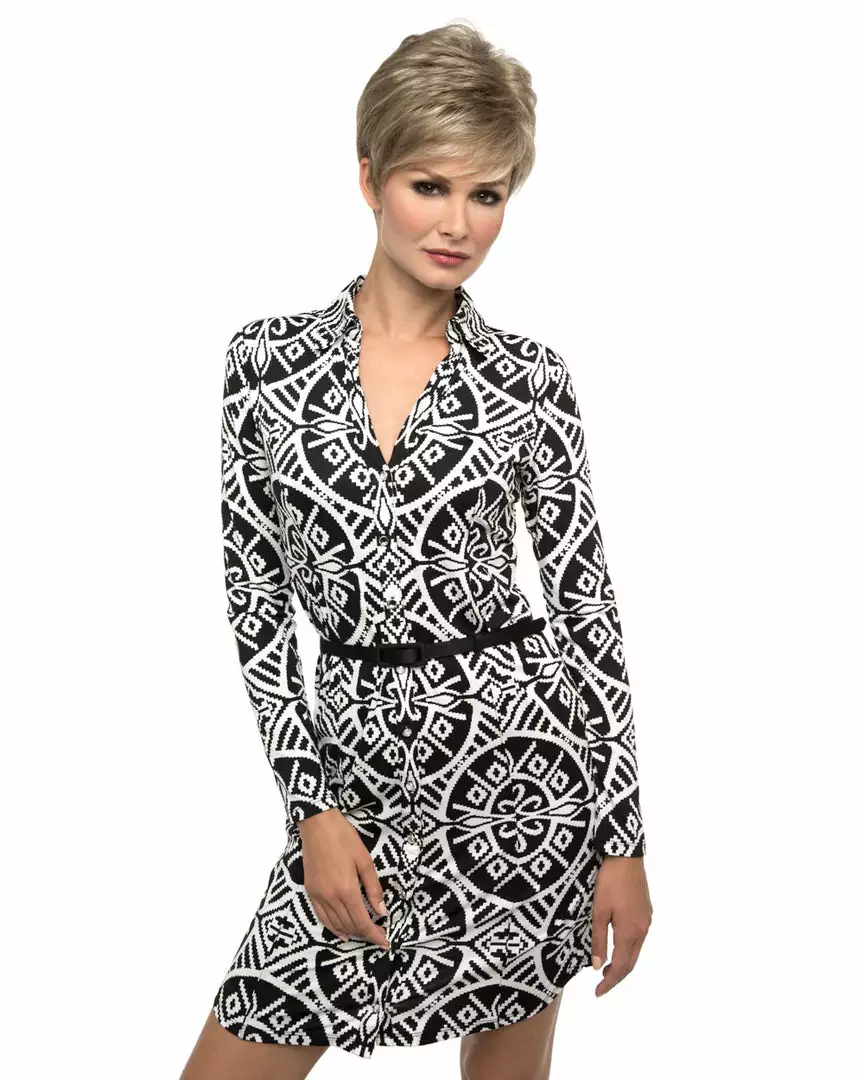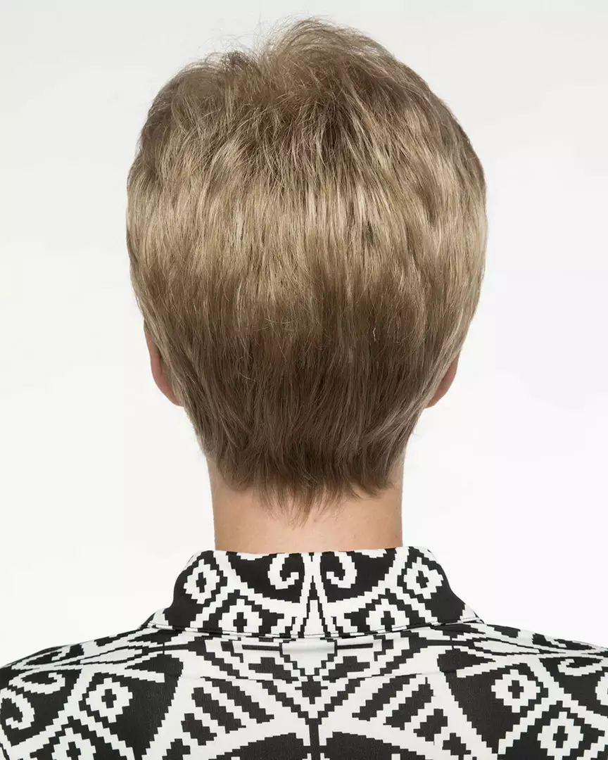 Short, piecey layers all over and a little boost of volume at the crown bring some sass to this classic pixie. The Open Top construction keeps things lightweight and cool, while full, feminine, side-swept bangs give this wig a hip, fresh style.
