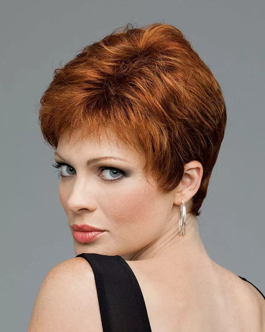 Jeannie by Envy offers fully hand tied features with mono top construction, lace front technology and hand tied sides and back. This chic pixie cut offers styling flexibility with its sophisticated silhouette. Comb this style to the side or off the face and create your own unique fashion statement. Lightweight and fashion forward elegance from Envy Wigs
