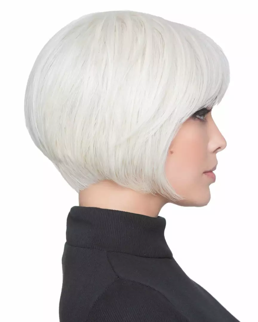 A geometric blunt cut with perfectly placed bangs. A bob back that tapers at the nape and our custom fitting Sheer Comfort cap with a sculpted lace front and a soft mesh monofilament top for an undetectable hairline that delivers all-day comfort.