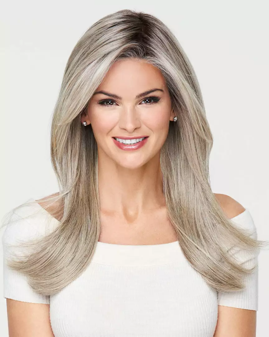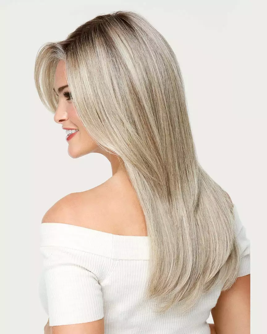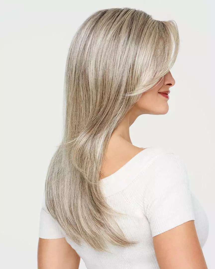 A classic longer look. Tailored. Polished. Like a professional blow out with a salon-quality finish. The long, side-sweeping fringe frames the face. More than smooth and glossy dream hair, it’s lightweight, comfortable, and easy to wear. Confidently pull into a ponytail thanks to the hand-tied base and extended lace front.