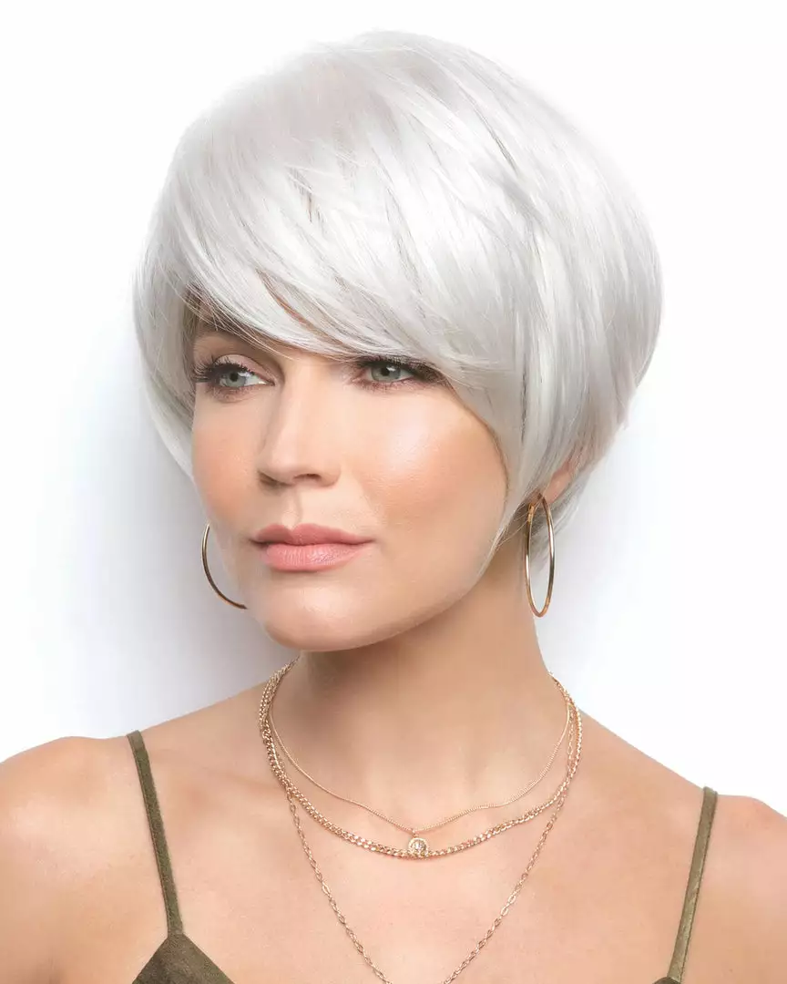 Nima from Noriko Collection is a short-length synthetic wig. This straight ready-to-wear wig is a tapered short bob with the natural body to create a timeless charm look. Nima has soft layers that will frame the face line beautifully. Nima is a machine made with adjustable tabs in the back nape area to allow a more comfortable fit. The result is a comfortable fit with a natural look that is both fashionable and easy to wear.