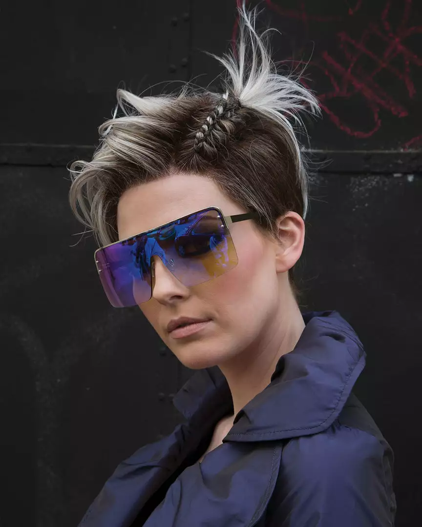 Be inspired and get creative with Perry’s choppy layers and subtle undercut. Go from simple and sleek to fierce and free. Whatever look you choose, this pixie is unforgettable.