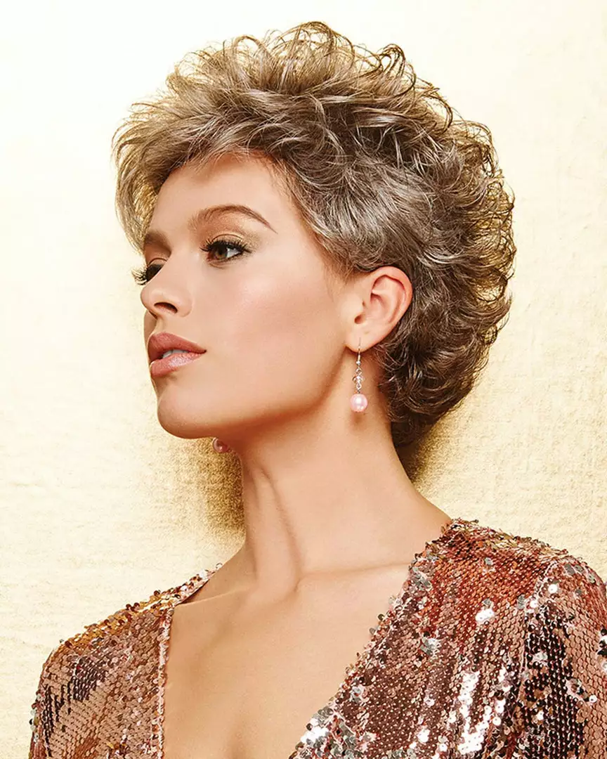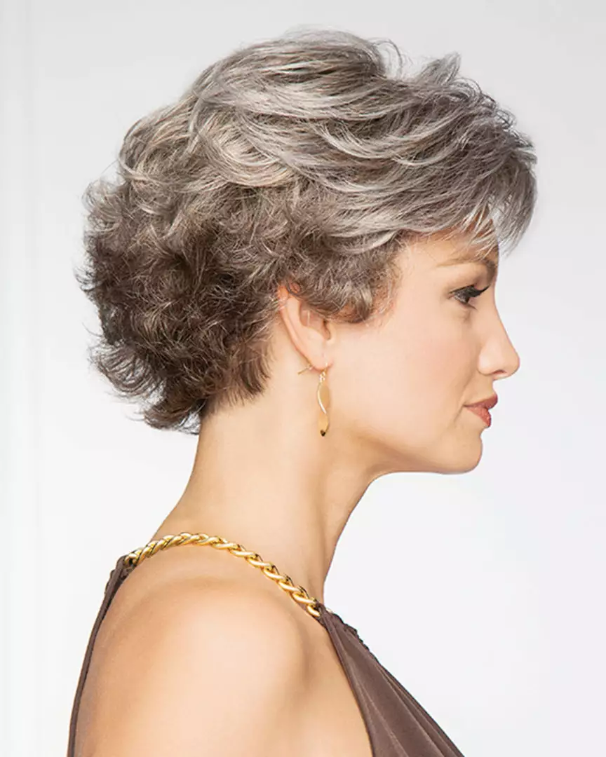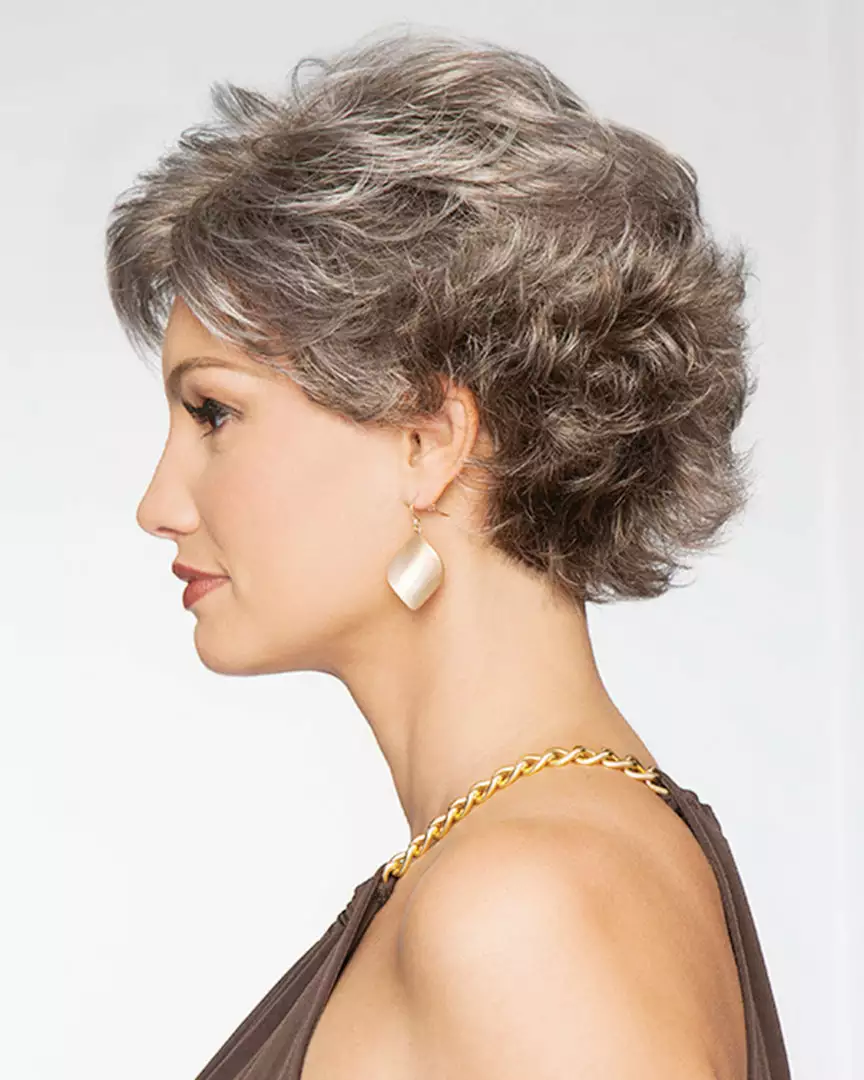 Soft layers in the front and side blend to an easy care brush-up back.