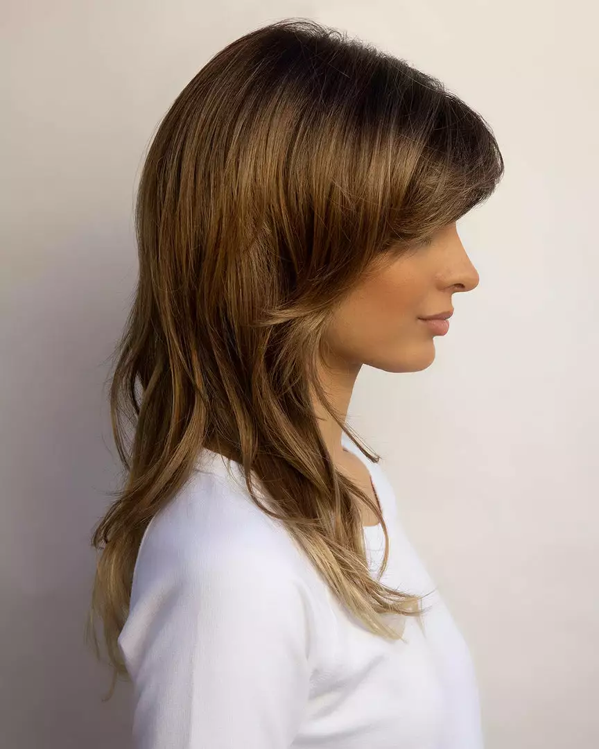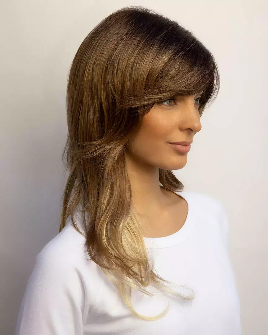 Royce from our Amore XO Plus Collection is a long-length synthetic wig. This wavy ready-to-wear wig is stunning with soft and wavy layers and a side-swept fringe. This style has numerous styling options to switch up your everyday look. Our Royce cap construction is Monofilament and lace front plus soft net. The lace front is a hairline fusion technology with a minimal lace front for a natural look. Wefts are sewn onto soft, light breathable material that contours to the shape of the head. Amore XO Plus features the same XO quality in a lighter cap with an airy single monofilament for maximum comfort and breathability.
