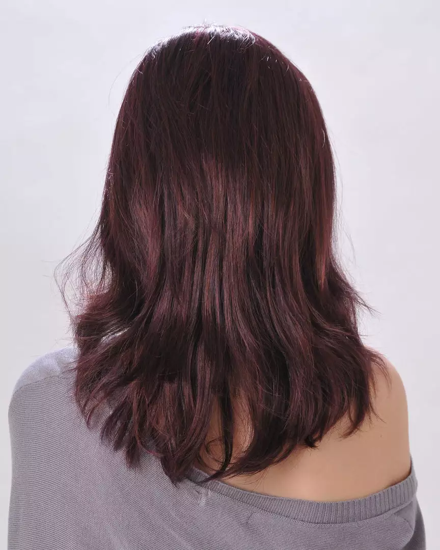 Mid-length with layers around the face and a scalloped front to create a natural look.