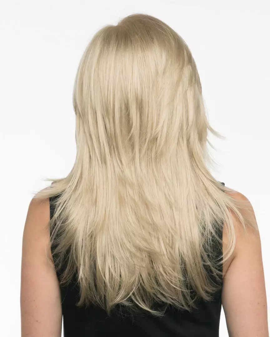 Celeste by Envy offers our Mono Top construction on this long layered face framing bombshell. Layers upon layers create trendy tresses that can be combed with side wept bangs or towards the face for that bombshell bangs styling and appearance.