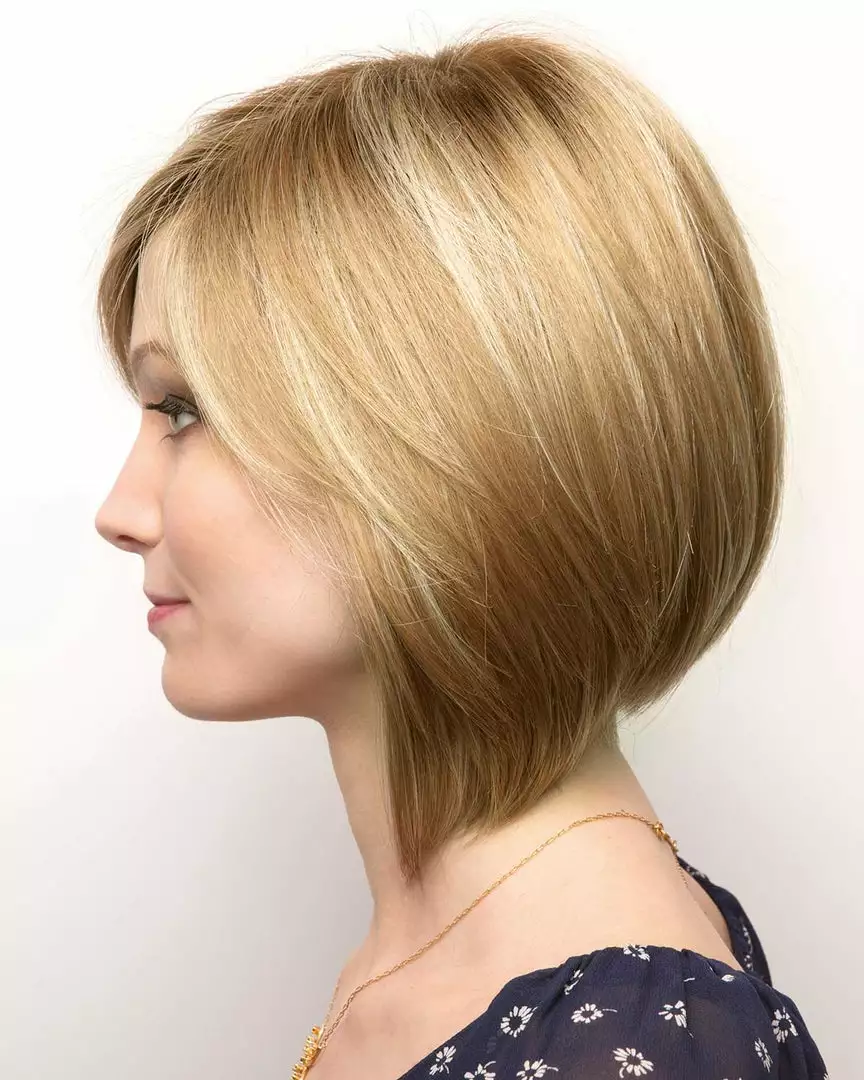 A swingy angled bob with side swept fringe creates a simply beautiful look.