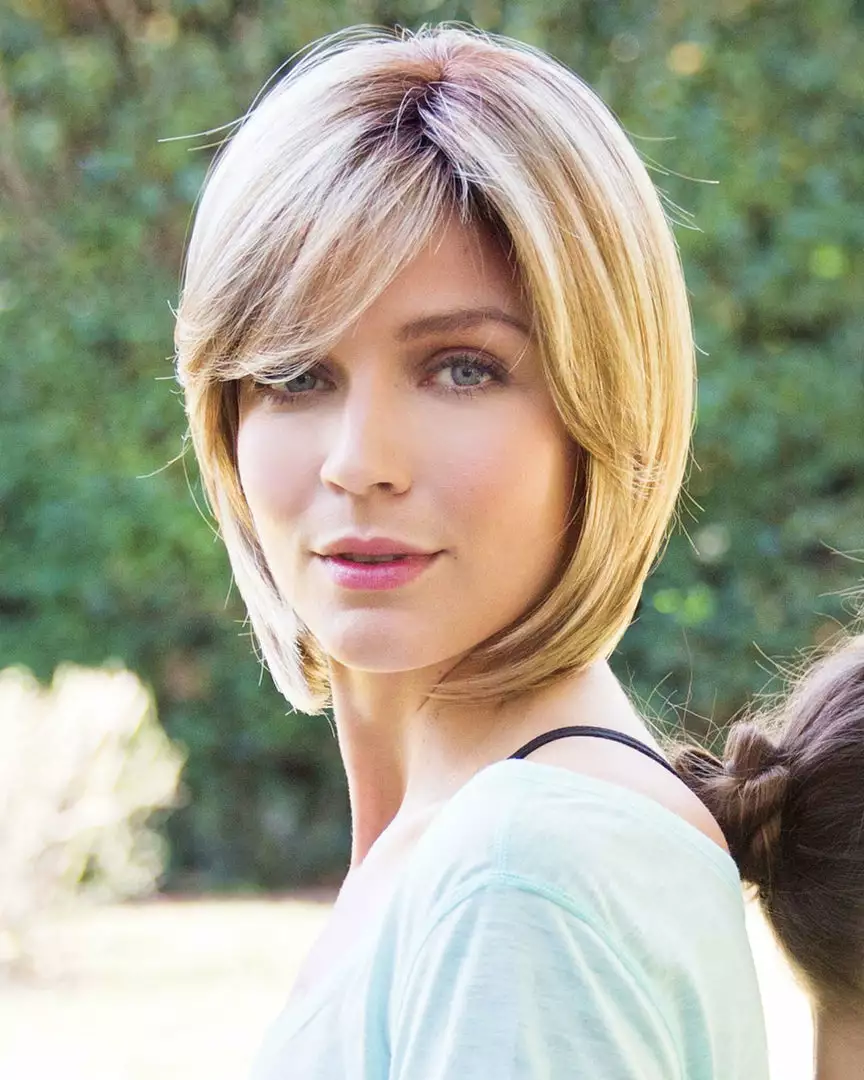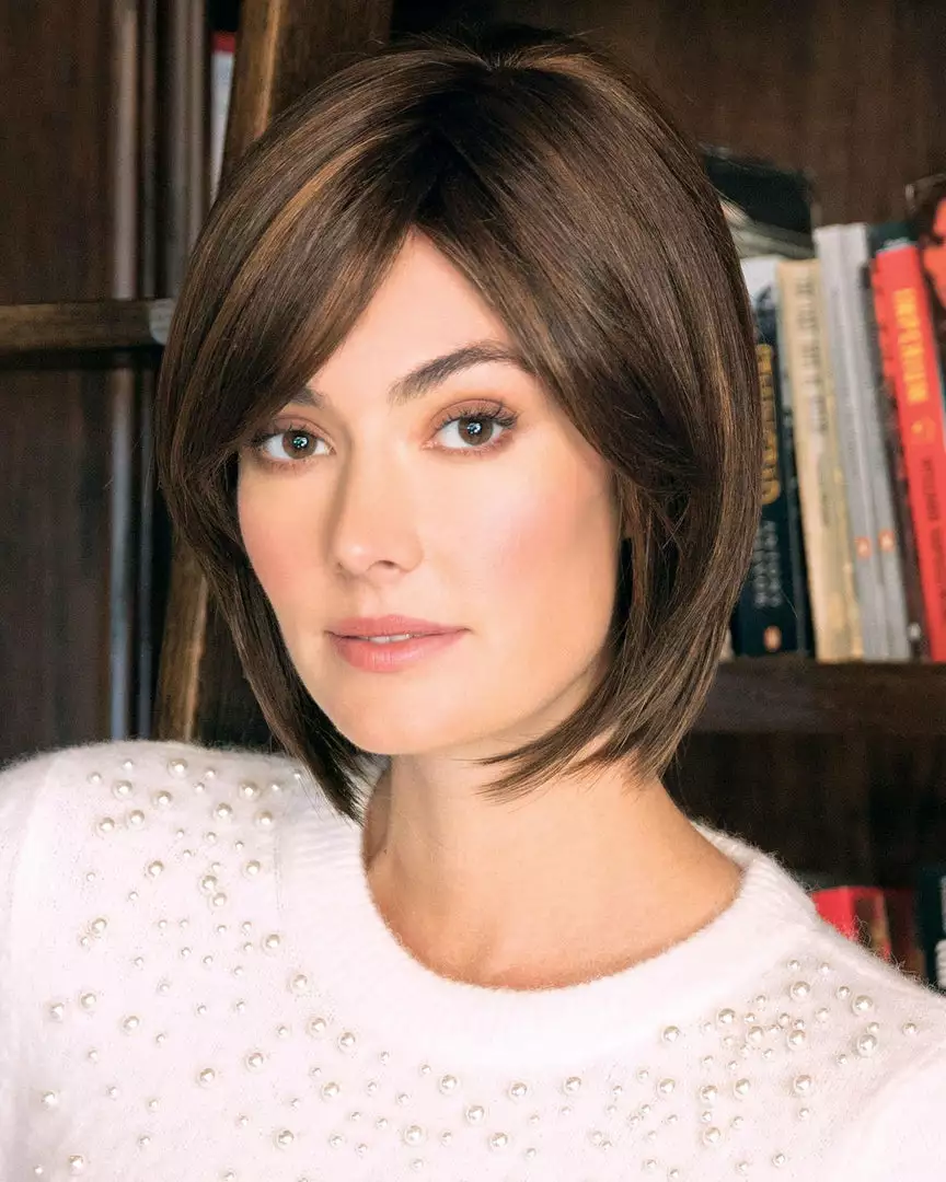 Your favorite style now in a NEW CAP! An angled bob with side swept fringe creates a simply beautiful look.