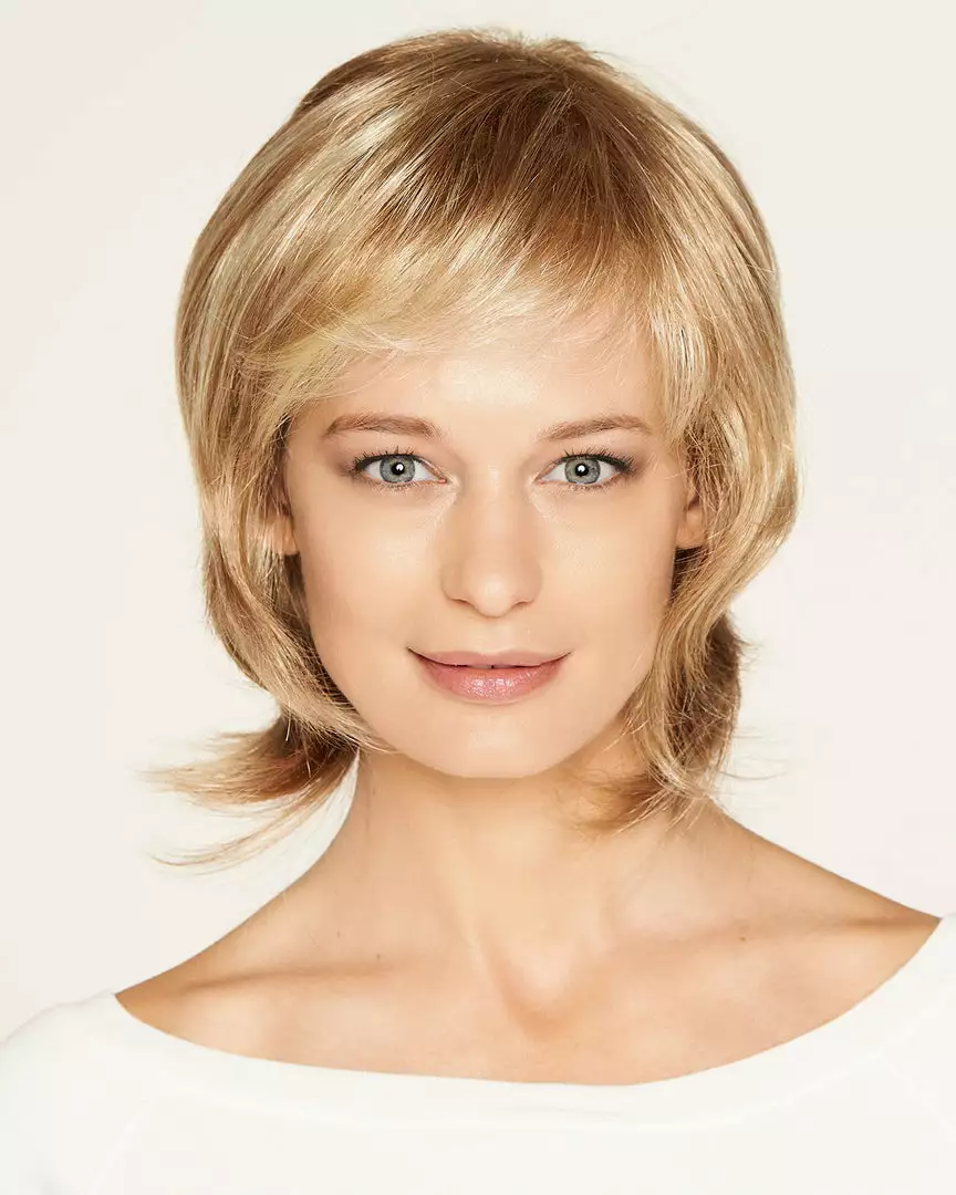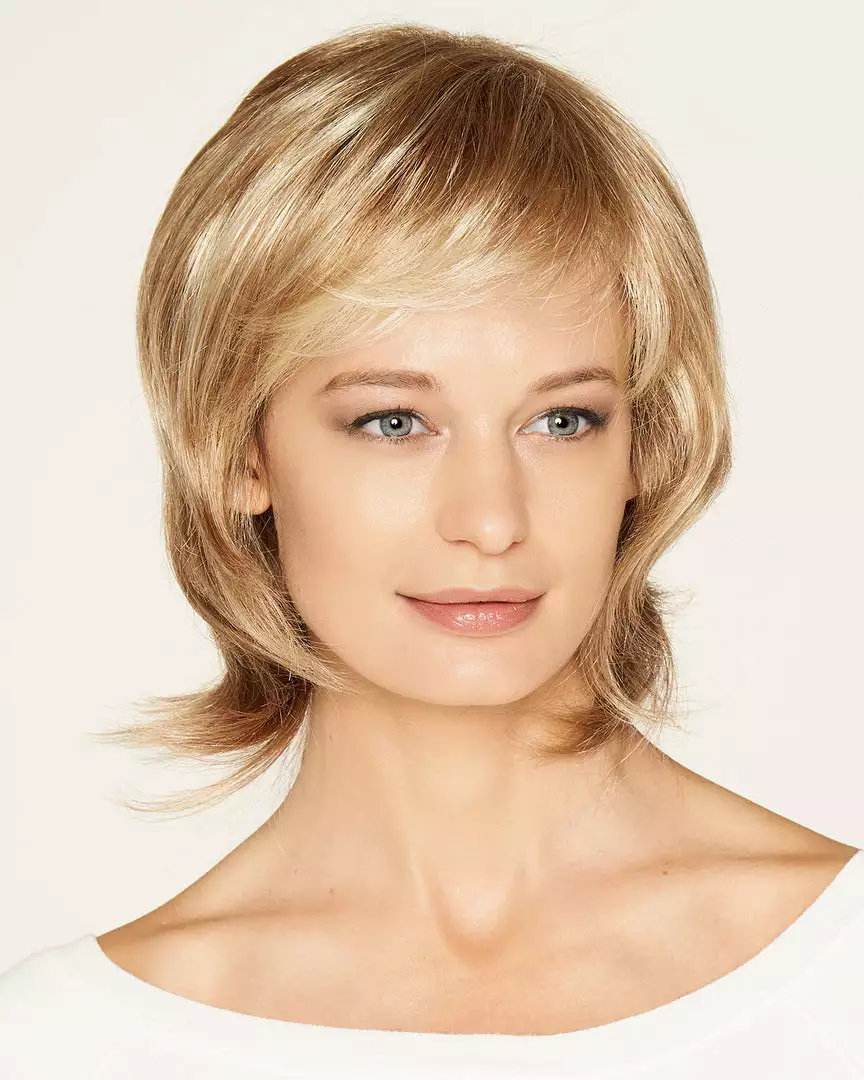 Straight layered shag with wispy tips. With long layers that curl to frame the face as well as the neck and wispy realistic bangs. Erin is a short bob wig ideal for on the go styling. Super soft velvet front provides comfort but also gives a soft feel without irritation.