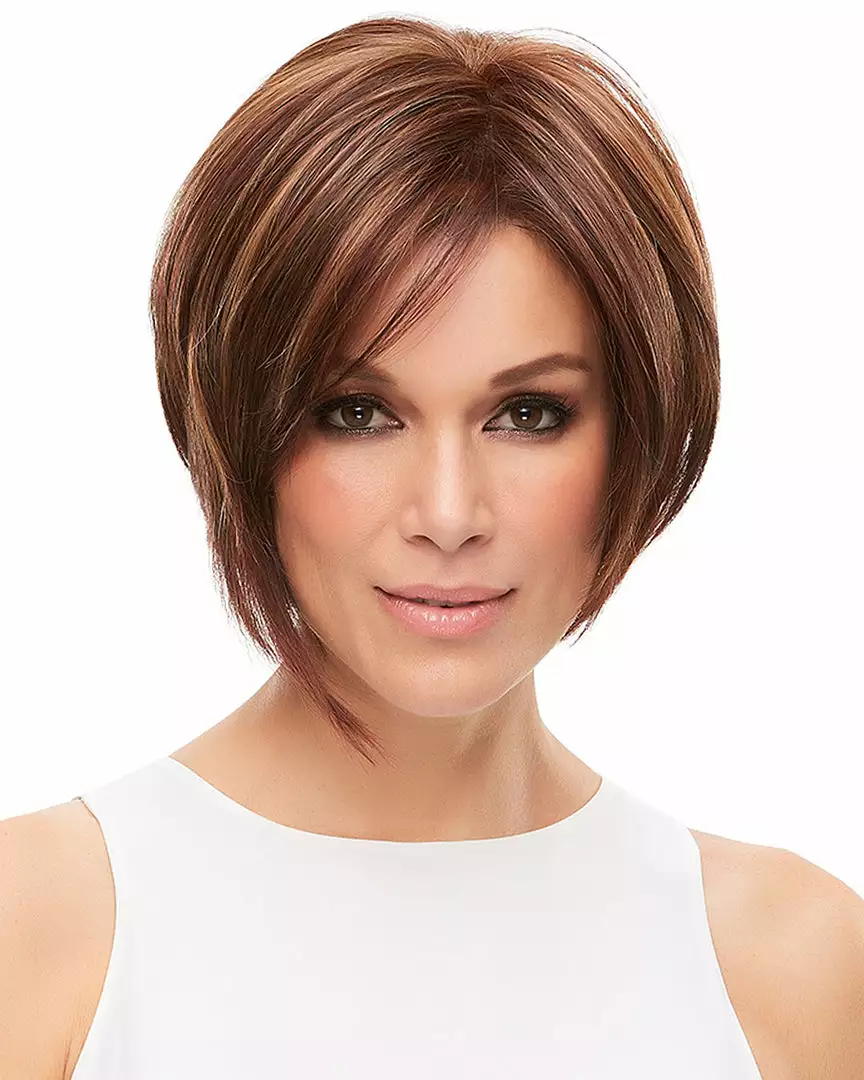 Gracefully chic while in-your-face edgy, this asymmetrical stacked bob has it all: heat styleable HD tresses, a discreet lace front and an invisible monofilament cap