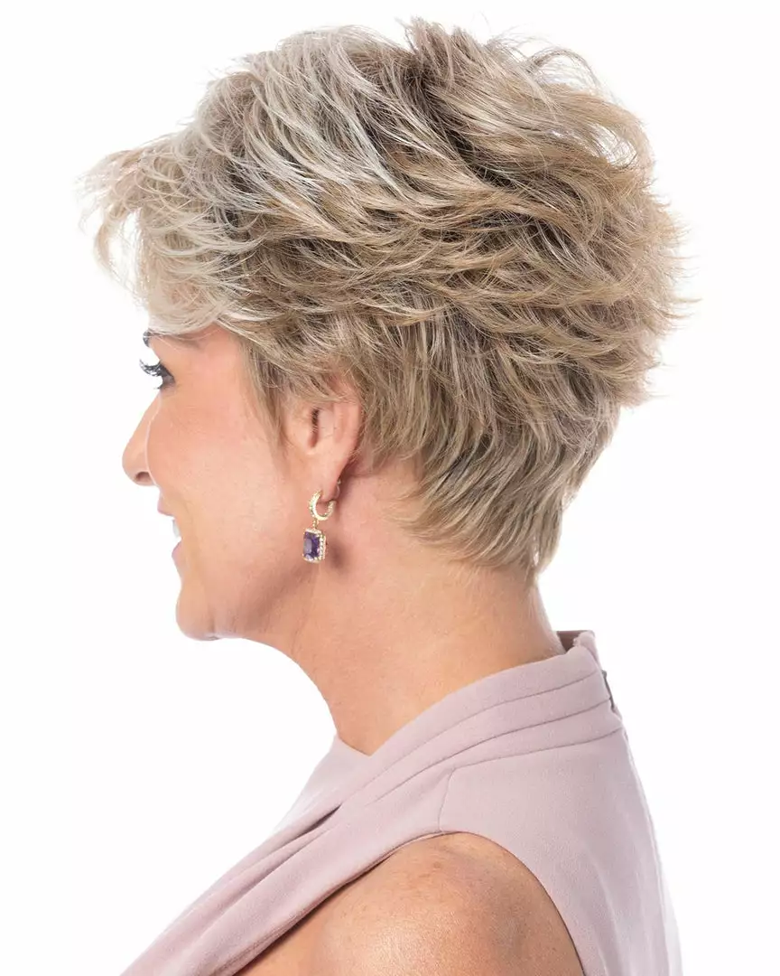 Loose Layers & Textured Style. Inspiration HF features all-over loose layers with textured flipped ends that sweep softly up in the back. The short, casually chic and stunning styling is accented by the natural contour and tapered neckline. Wear the inspiration tousled or smooth depending on your mood. The custom-fit cap easily adjusts to most head sizes. With the look and feel of healthy, natural hair.