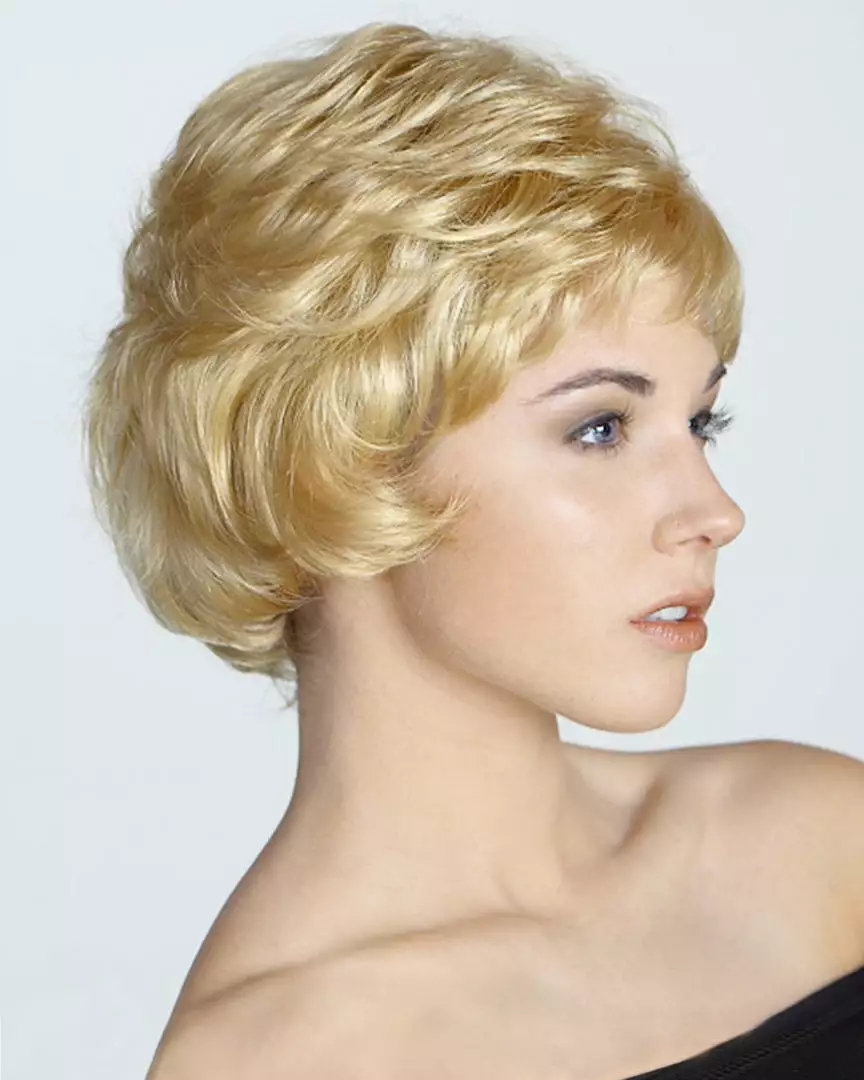 Jennifer is remarkably impressive. Showcasing a medium layered top and under curled bottom pieces, this voluminous wig style is flirty, fancy and fun all at once. This is a synthetic wig with a wefted cap construction. This piece can be easily teased into a spiky style or combed smooth.