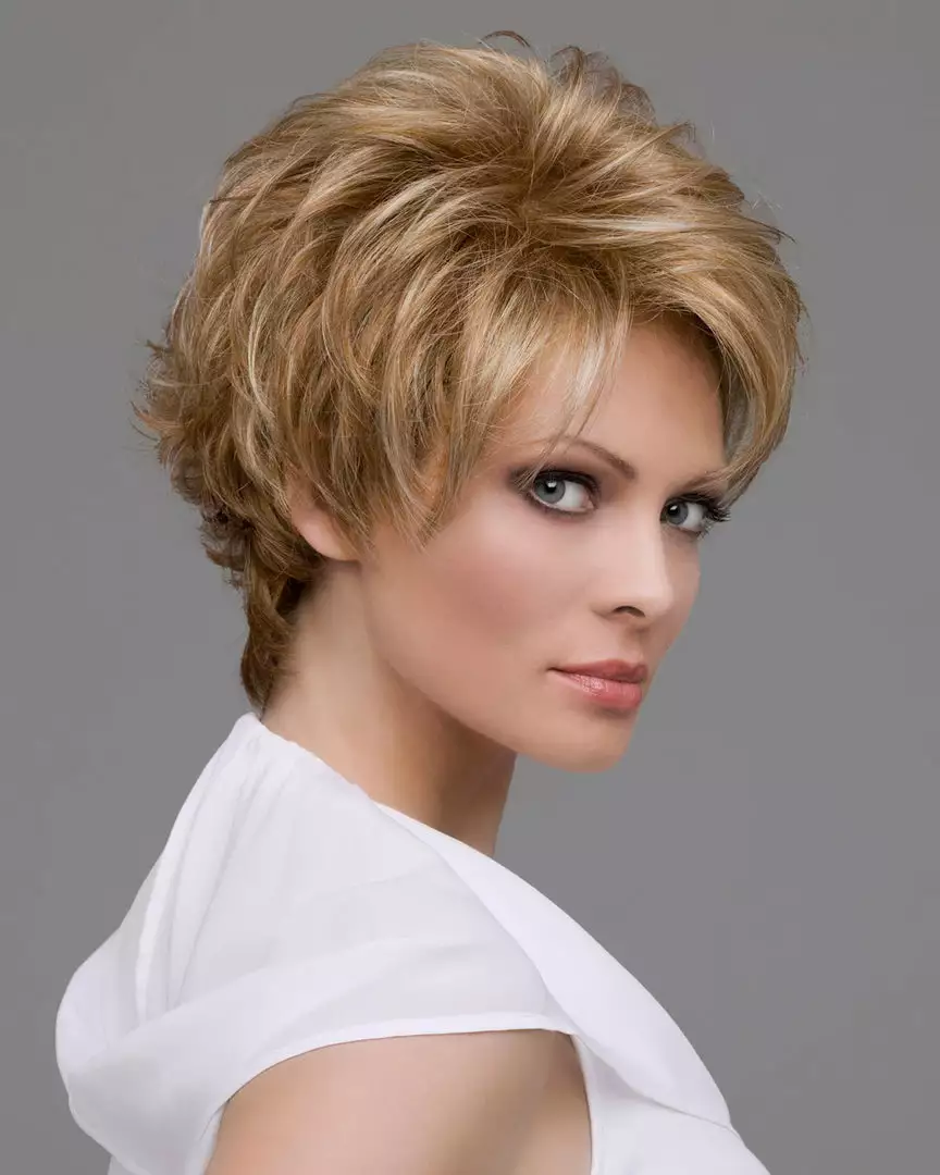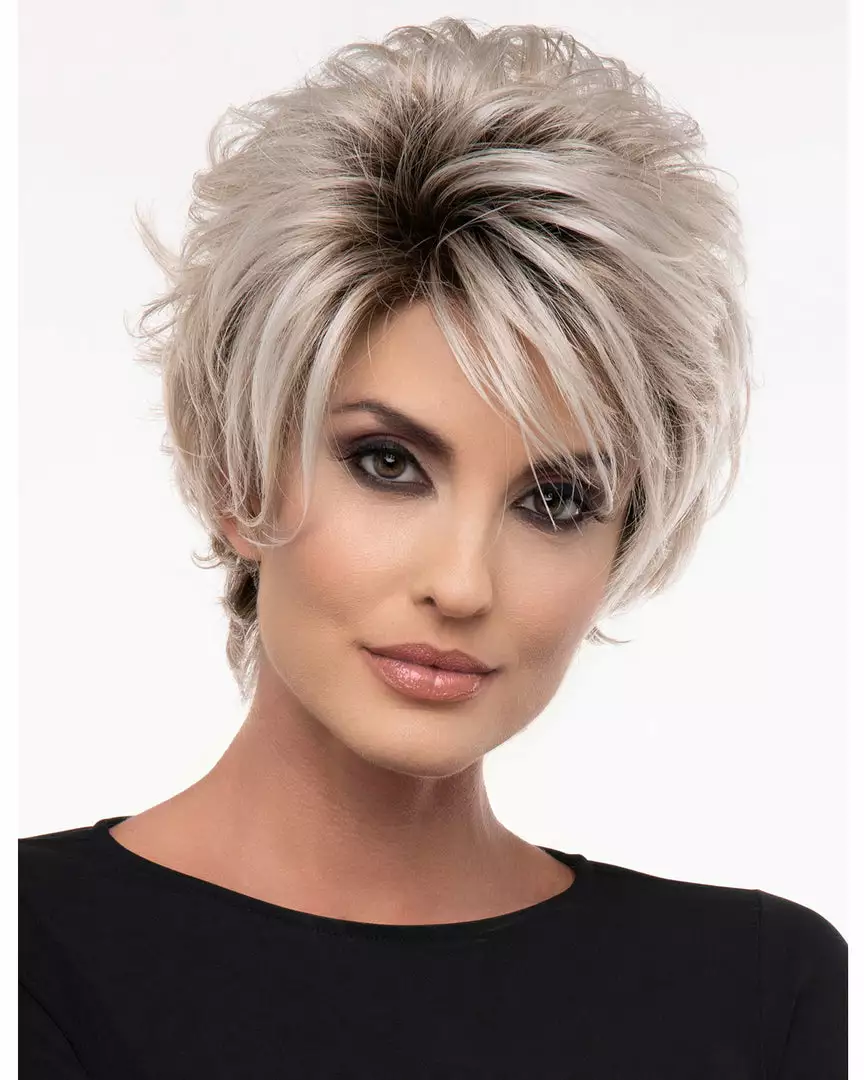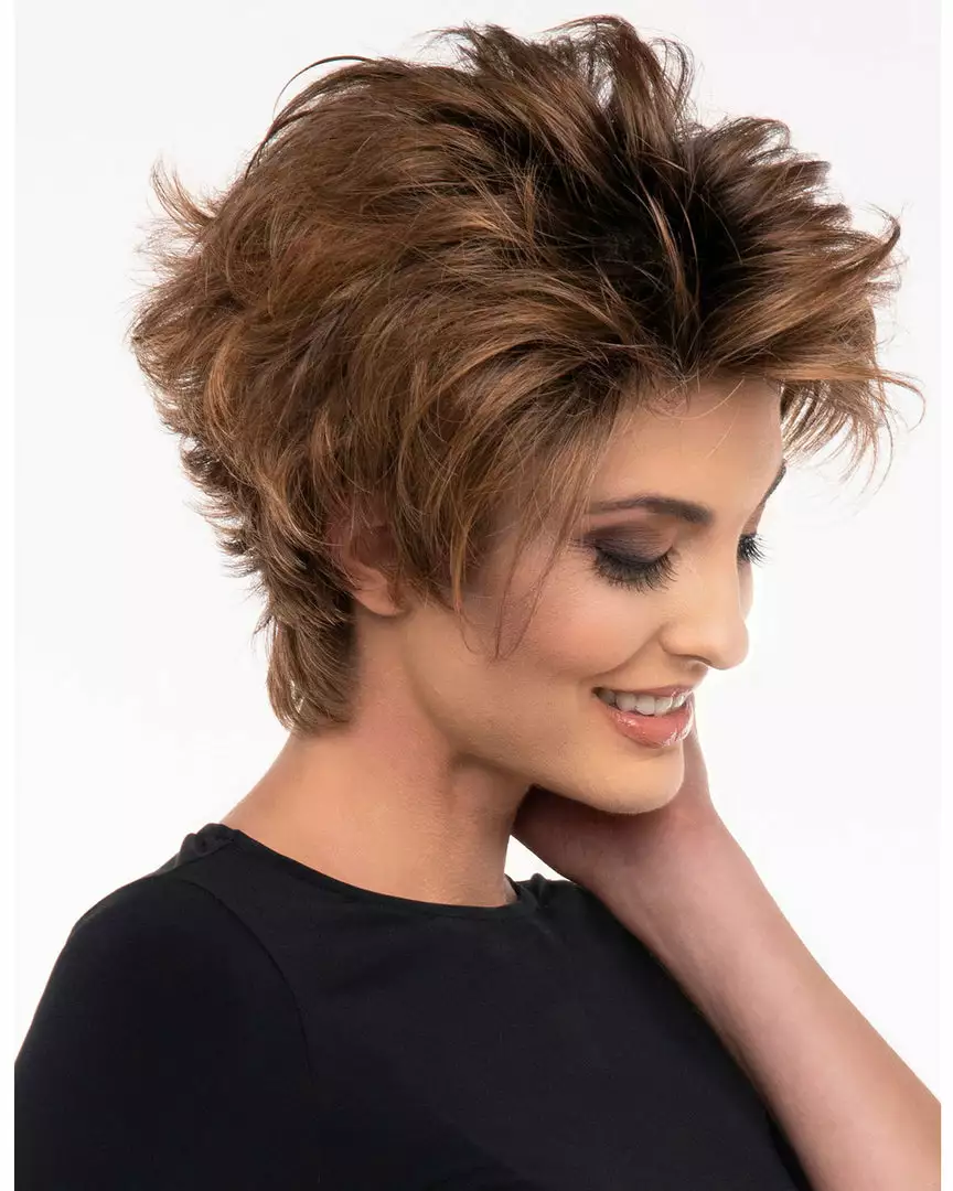 Micki by Envy offers lace front technology and mono top construction for this lightweight fashion statement. Soft layering with razor soft edges flip out to give a spunky textured appearance. Style this back or off to the side to create your own unique style with a natural hairline that is unsurpassed in lace front workmanship.